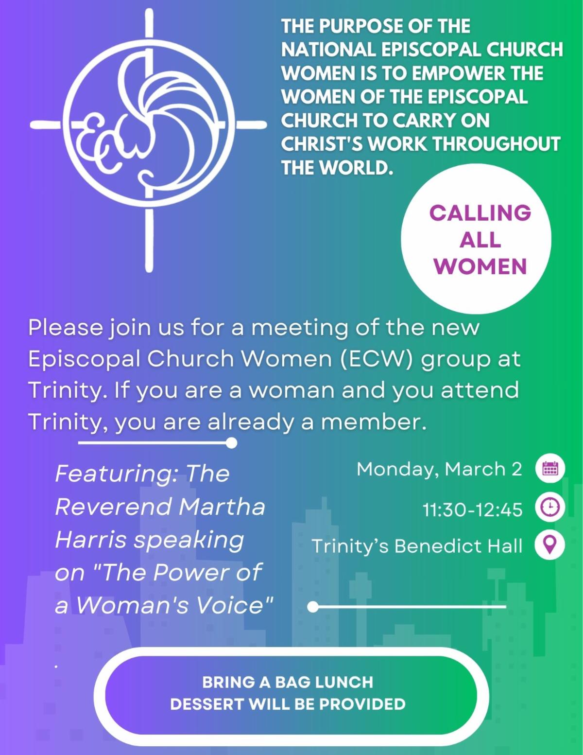 Currently, she serves on the Trinity Vestry as the liaison for Parish Life and has been involved with the Tour of Homes.