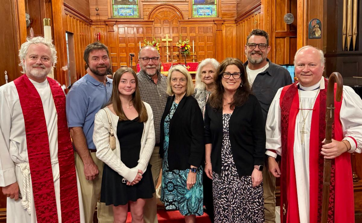 | | Last Sunday we welcomed nine of your fellow brothers and sisters into the Episcopalian family. With The Rev. Stephen Pecot, & The Rt. Rev. Russell Kendrick, they are (l to r) T.J. Wolferseder, Amelia Wolferseder, Mark Dorward, Mollie Hill, Joan Faison, Kim Miller, & David Fowlkes. Not pictured are Teresa and Kaz Kaczmarek. A holy and grace-filled welcome to these fellow pilgrims joining us on the journey! Please congratulate them. More importantly, support them as they take the next few steps towards God. | |