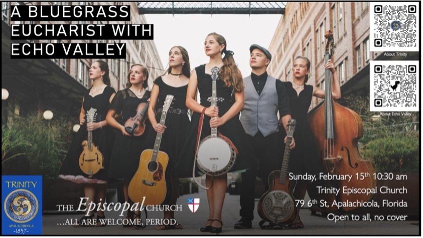 On top of that, we will be blessed again by the harmonies, energy, and prowess of the bluegrass band Echo Valley. This band of siblings from western Pennsylvania loves coming to Apalachicola and have agreed to be our musicians that day. So get ready for more toe-tappin’ and foot-stompin’ hymns with a Bluegrass Eucharist. Spread the word! Given that our church is usually on the full side each Sunday, consider arriving early that day just to grab a seat. We are advertising more this year.