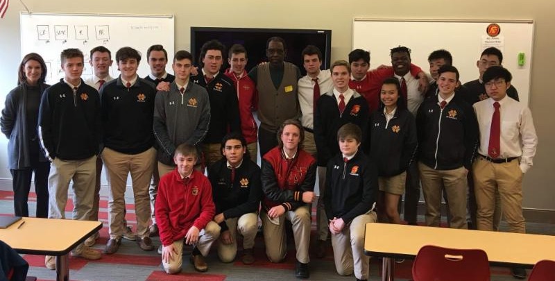 The career development students are pictured with Coach John Mitchell of the Pittsburgh Steelers. He shared his experiences with his career in professional sports as well some great life lessons.