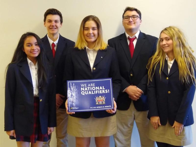 Trevor Huddleston is competing in original oratory at the NCFL nationals. He is the diocesan champion in oratory this year. The duo of McKenzie Waslosky (far right) and Christa Intong (left) are also competing at the NCFL nationals. The team of Gabby Karanikos and Tom O'Toole will be competing at the NSDA nationals in June in Dallas