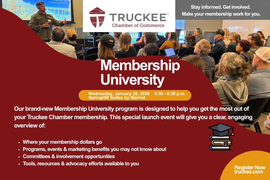 Enjoy lunch on us and gain valuable insights tailored to the challenges of mountain-town businesses. Our monthly second Wednesday Lunch & Learn workshops are free for all Truckee Chamber Members, but please register.