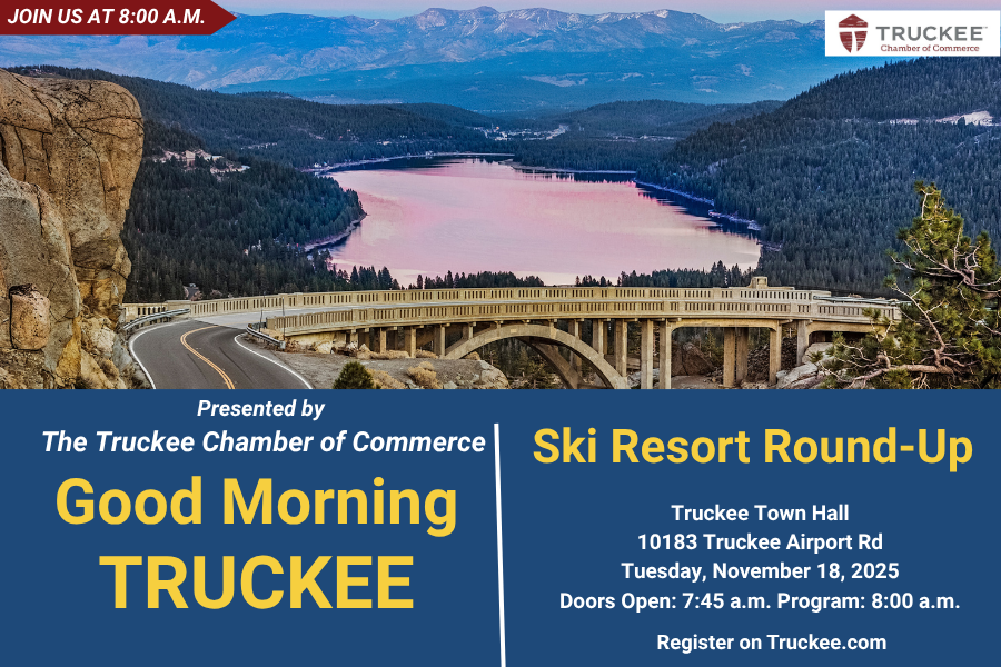 This month's breakfast meeting is one of our most popular - Good Morning Truckee: Ski Resort Round-Up. Join us on Tuesday, November 18 at 8:00 a.m. at Truckee Town Hall to hear from representatives from Palisades Tahoe, Sugar Bowl, Tahoe Donner, Boreal, and Northstar as they share what's new for the upcoming season. Whether you're a local skier, a business owner gearing up for winter, or just excited for snow, this is a can't-miss program to kick off the season! Our speakers will be: