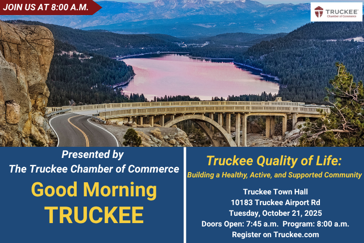 Join the Truckee Chamber of Commerce on Tuesday, October 21 at 8:00 a.m. for our monthly Good Morning Truckee breakfast meeting, Truckee Quality of Life: Building a Healthy, Active, and Supported Community.