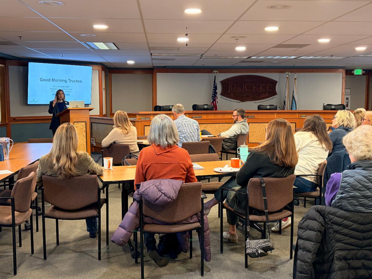 Sven Leff, General Manager of Truckee-Donner Recreation and Park District spoke not only about not parks and facilities and partnerships that TDRPD manages, but also the many programs and events that they run that enrich the lives of our residents. Tahoe Forest Health System CEO Anna Roth provided an overview of some of their programs and Lizzy Henasey talked about specific research and resources that you can access on TFHS's website. Mayor Jan Zabriskie, Nevada County Supervisor Hardy Bullock, Jazmin Breaux, Program Director for Nevada County Health and Human Services Department, and Seana Doherty of the Tahoe Truckee Homeless Action Coalition provided a snapshot of homelessness in Truckee and some exciting projects that are in the works to provide shelter for those in need. We also heard about the great work of nonprofit Truckee Lions Club from their Board President James Bartlett.