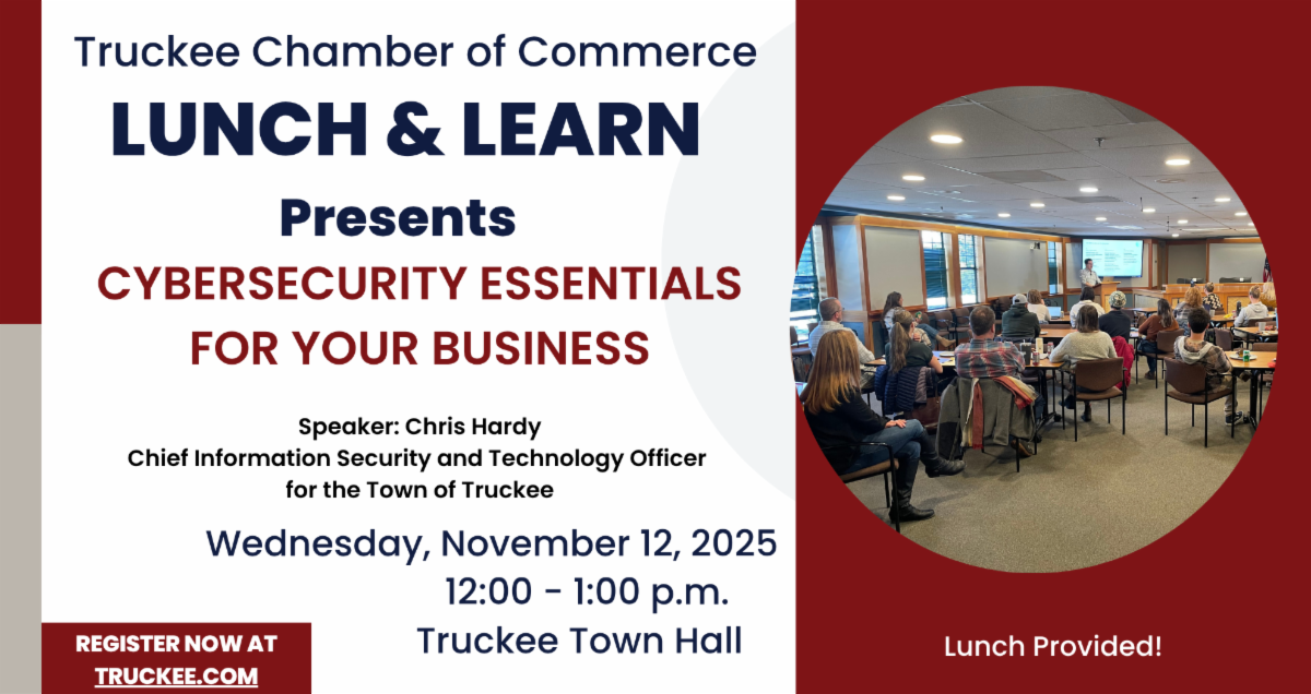 Join us for our November Lunch & Learn featuring Chris Hardy, Chief Information Security and Technology Officer for the Town of Truckee. Chris will discuss key cybersecurity practices every business should know, from protecting sensitive data to recognizing potential threats before they cause harm. He’ll also share insights on current trends in cybercrime and how small businesses can build resilience through proactive security measures.