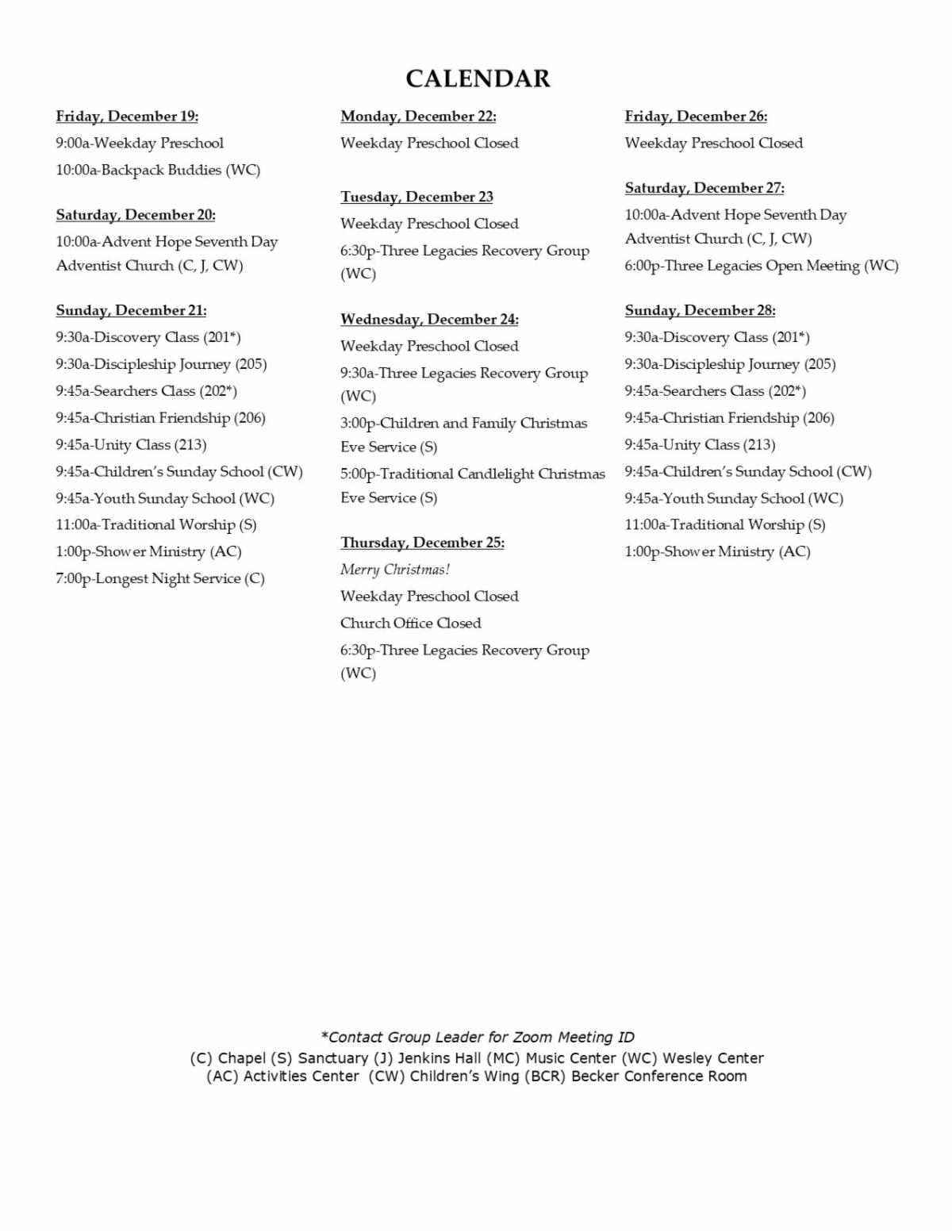 The church office will be closed December 25, 26, 29, and January 1 for the holidays.