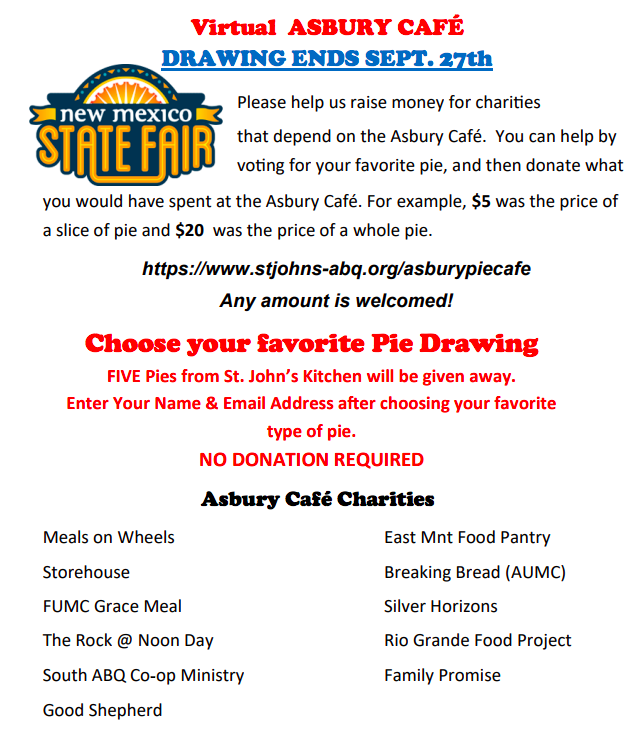 Office Administrator, Debbie Brown, will be answering the phone at St. John’s every weekday from 9:00 am-2:00 pm. Please call the office if you have any concerns or pastoral care needs. Debbie will get messages to Pastor Pam and Pastor Kelly. The office number is 505-883-9717.