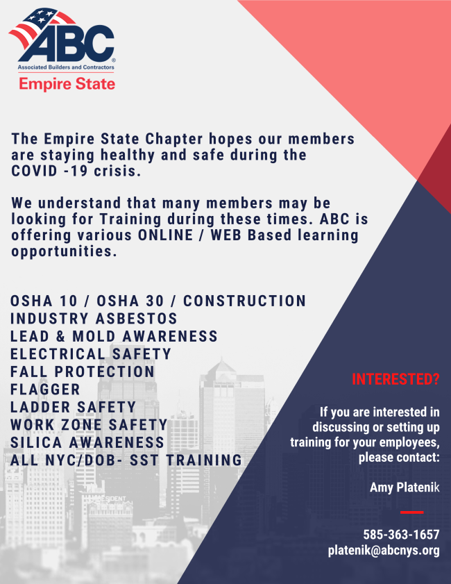 Construction Training Centers of New York State Fall 2020 Semester Registration Now Open