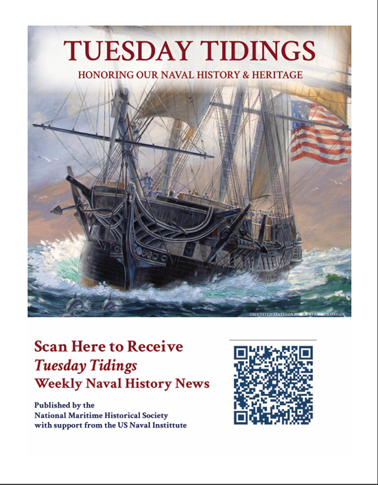 Tuesday Tidings is compiled by Dr. David F. Winkler and Jessie Henderson as a benefit for members of the National Maritime Historical Society and friends of naval history.