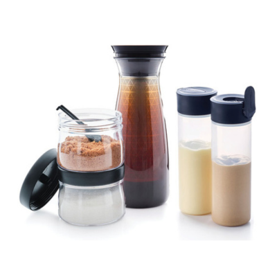 Includes 1 1/4 -Qt Cold Brew Carafe, two 12-oz Squeeze It Bottles, and two 19-oz Counterscraping Dry Containers.