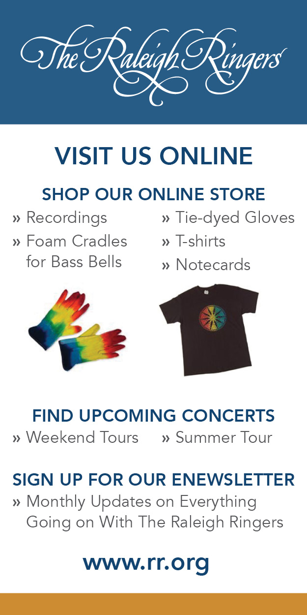- Listen and often look up and around; be part of the ensemble with your conductor and fellow ringers. It's much more valuable to be immersed in the experience and to learn from visiting experts than to hit every note.
