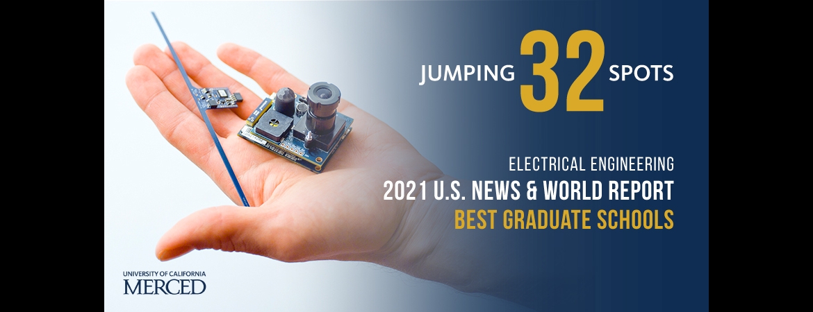 Our engineering graduate programs continues to rise in rankings. U.S. News ranks graduate programs solely on peer assessment surveys sent to deans and department heads in each engineering field, reflecting the growing prominence of UC Merced’s faculty and alumni in the minds of engineers and academics nationwide. Our graduate programs saw an across-the-board rise: Mechanical engineering ranked 111 (rising 11 spots from 122); Environmental Engineering ranked 77 (up seven from 84); Electrical Engineering ranked 122 (up six from 128); Biomedical Engineering ranked 112 (up six spots from 118); and Computer Engineering ranked 91 (up three spots from 94). Materials Engineering ranked 91.