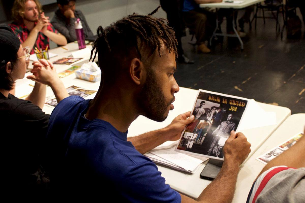 by Lanford Wilson are well under way! We love the spirit of collaboration that runs throughout our productions; from first read through last week, here's MFA acting candidate Michael Rishawn looking at MFA costume design candidate Christopher Flagstad's fantastic research!