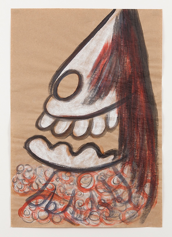Daniel Guzmán’s drawings, paintings, and installations are informed by a slew of sources, including comic books, punk rock, heavy metal, Roberto Bolaño’s writing, Gabriel Orozco’s art, and Mexican mural painting. Exploring his Mexican roots, Guzmán focuses on rituals like Aztec bloodletting ceremonies to examine contemporary violence. For a 2009 exhibition, Guzmán made a horror film that featured two Mexican intellectuals on the run from a mob of zombies. For New York Dolls (2004), Guzmán drew from New York’s punk rock scene, depicting the early 1970s protopunk band of the same name.