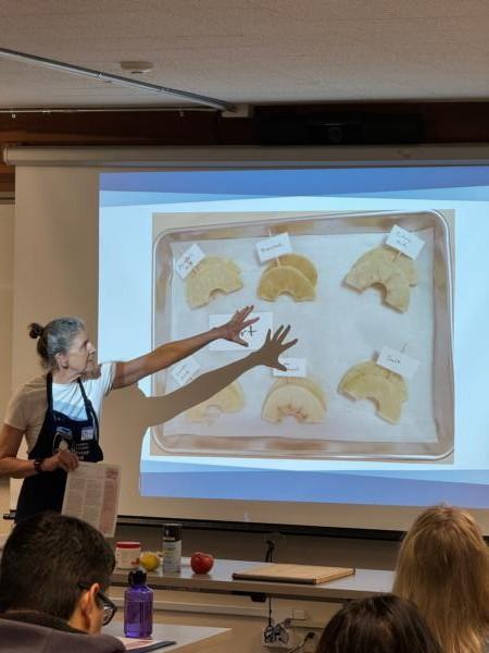 Class topics included the maintenance of apple trees and how to safely preserve apples using a variety of methods, such as steam canning, dehydrating, and freezing. This class was a collaborative effort between UC Master Gardener and UC Master Food Preservers and is just one of the ways the programs promote sustainable food systems and resilient communities.