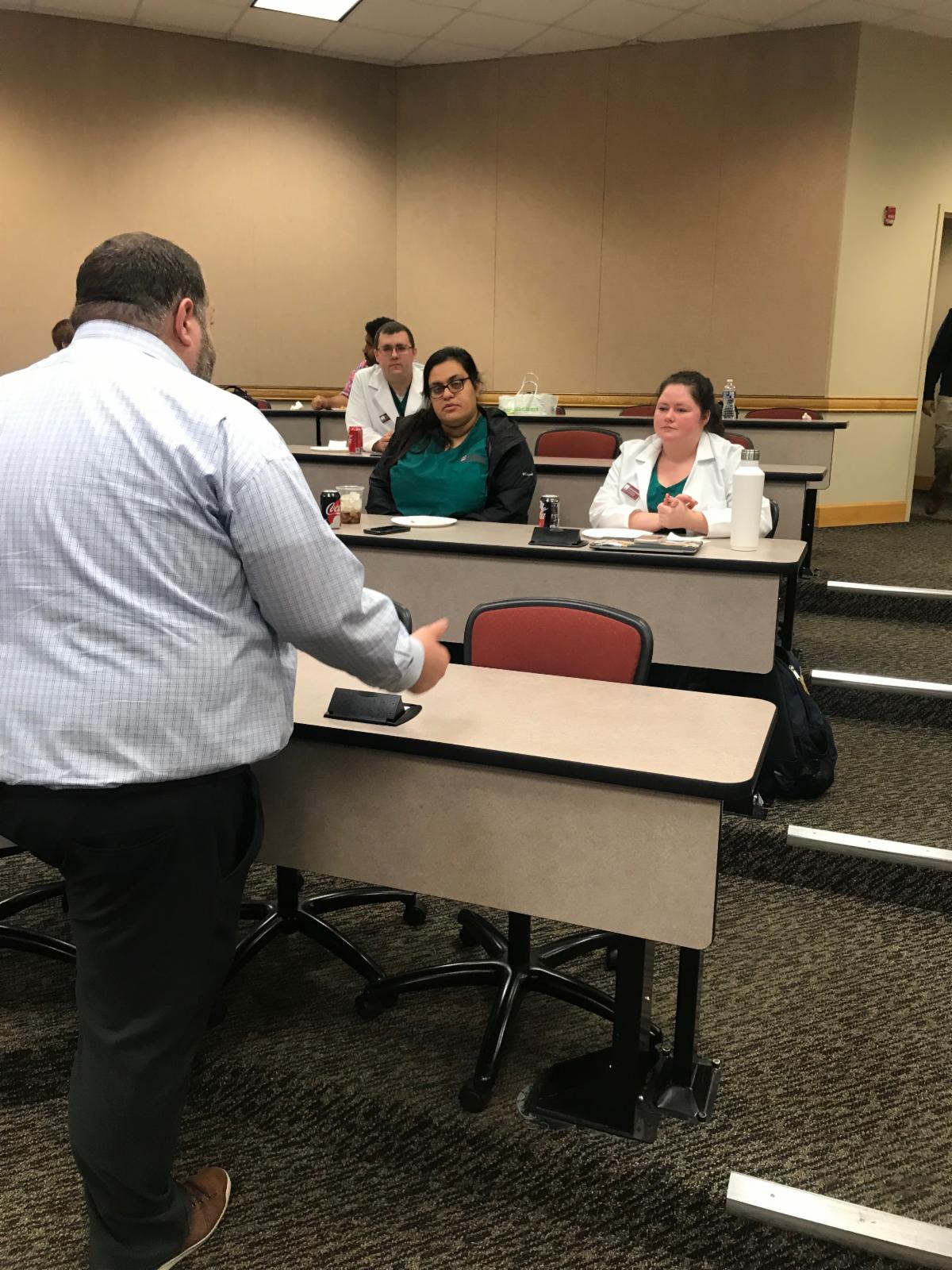 Walgreens Pharmacy was our guest for Convocation on November 5. The topic covered was "Adherence and Proportion of Days Covered." Following the presentation, Walgreens provided lunch at the Leadership Luncheon where students asked follow up questions concerning the presentation and our guests, Dr. Timothy DeRose and Dr. Sabrina Ray, provided personal testimonies about community pharmacy in a rural setting.