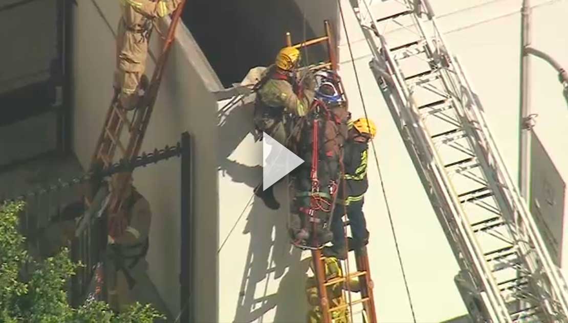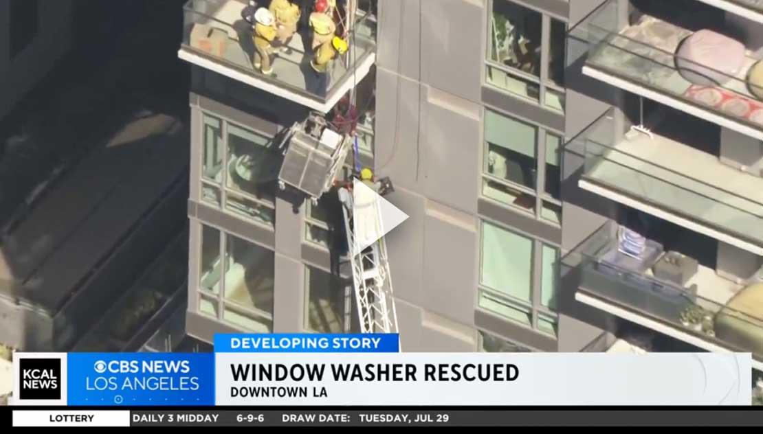 Window washer rescued after getting stuck on downtown Los Angeles high-rise