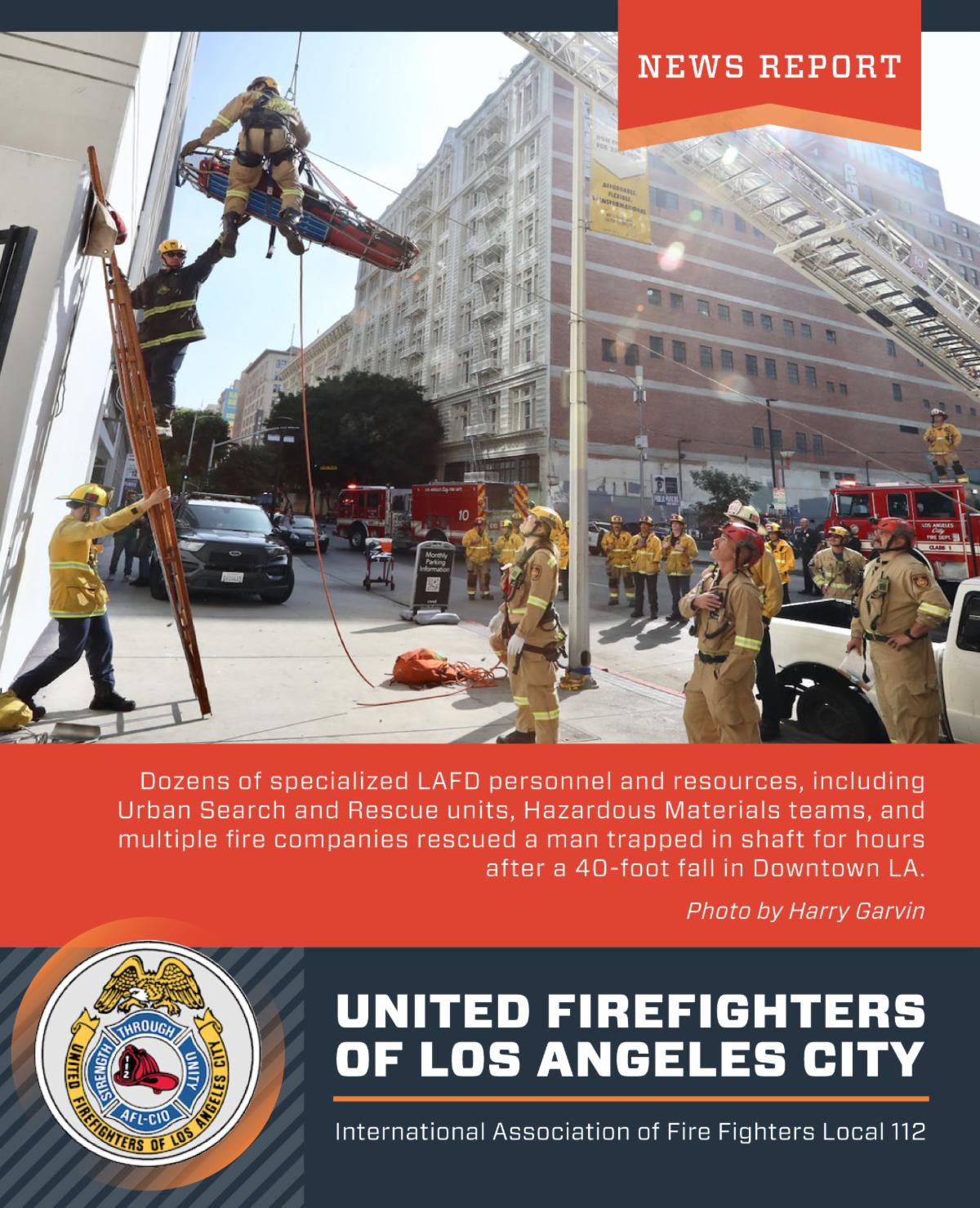 Firefighters rescue man trapped in shaft for hours after 40-foot fall in downtown LA