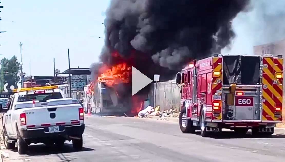 Crews quickly knocked down a recreational vehicle fire in Van Nuys on Saturday afternoon, with up-close footage capturing the raging flames that turned out to be fatal. It happened around 1:16 p.m., according to the Los Angeles Fire Department, and the RV was parked along a curb in an industrial area at 13400 W. Raymer St. LAFD crews arrived to find the RV fully ablaze. Footage provided by multiple Citizen app users showed that the thick plume of black smoke could be seen from hundreds of yards away, whereas video from people mere feet away showed the intense battle between firefighters and flame.