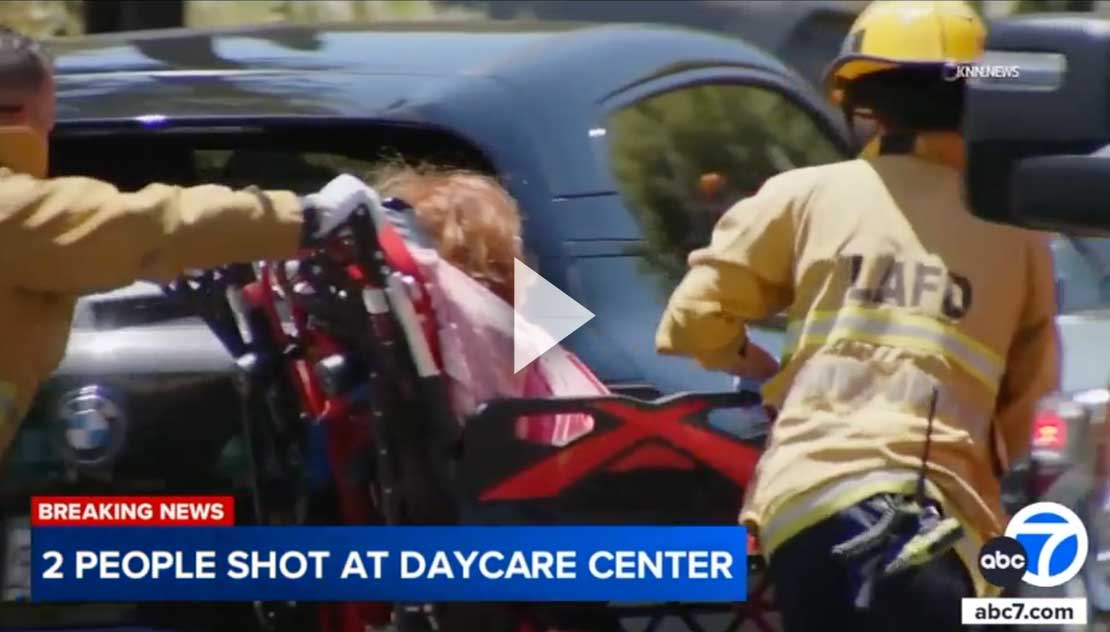 Two women were taken to a hospital Tuesday afternoon after a shooting at a residential day care in Granada Hills, officials said. No children were injured. The shooting was reported shortly after 12:35 p.m. at Kids Dream Learning Center, which is located in a two-story house in the 17000 block of Firma Court. The suspect fled and was taken into custody by Los Angeles Police Department officers near the intersection of Balboa Boulevard and Vanowen Street, about 7 miles south of the scene, according to the LAPD. The person in custody was not immediately identified. Video from the scene showed paramedics placing two women, who were on gurneys, into ambulances before taking them to a hospital.