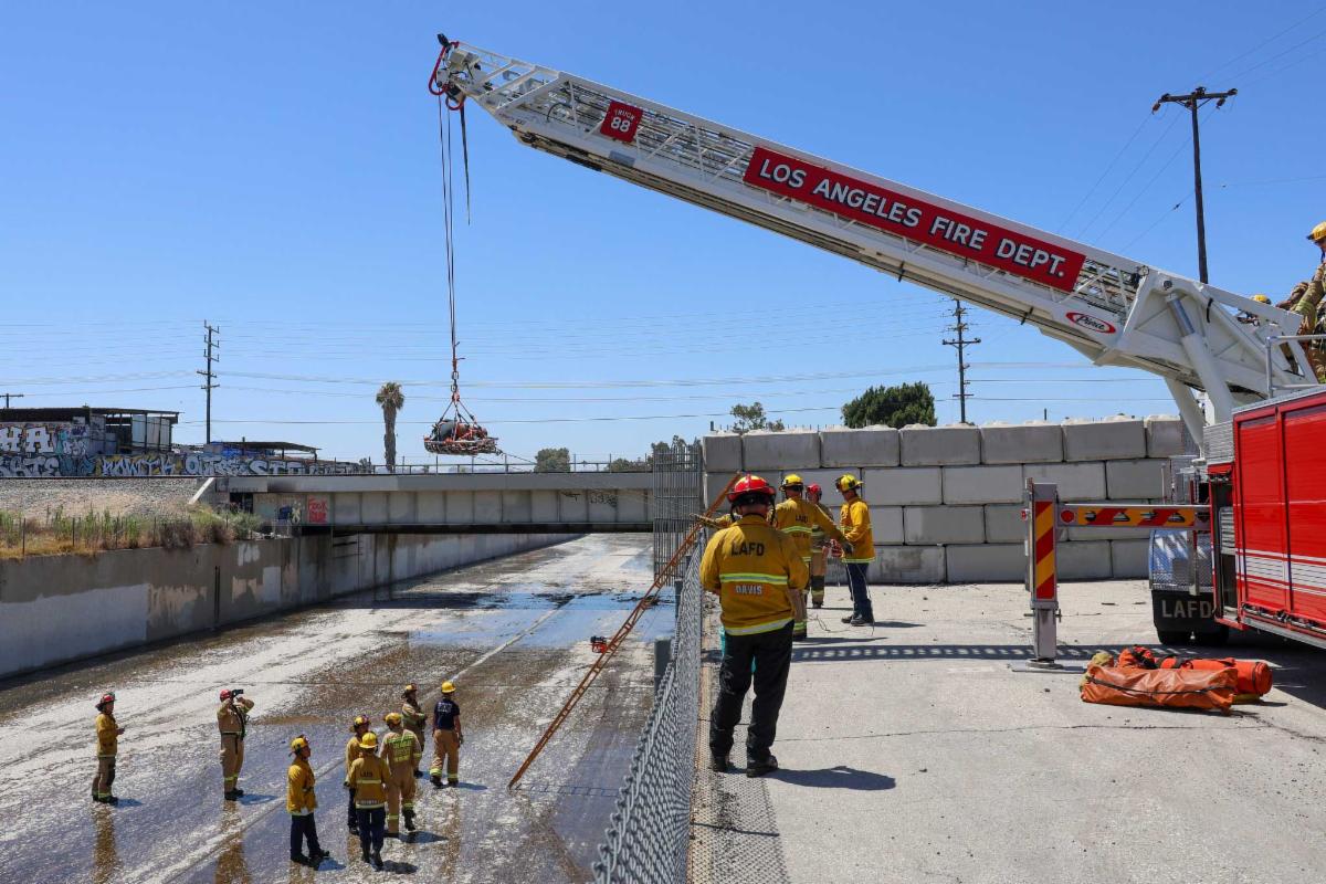 LAFD Conducts Technical Rescue, Woman Safely Retrieved from Tujunga Wash in Valley Glen