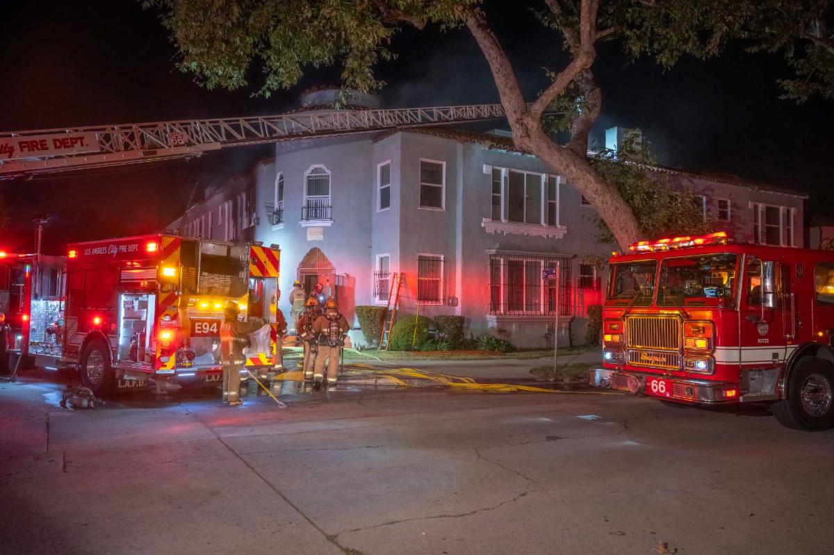 Early yesterday morning, firefighters successfully extinguished a blaze within a Leimert Park apartment building. The Los Angeles Fire Department (LAFD) reported that 37 fire personnel responded to a heavy fire in a ground-level unit at 4201 S 7th Avenue. It took them just 22 minutes to put out the flames.