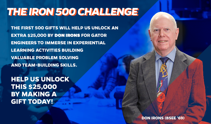 Thanks to the support of the Gator Nation, the Herbert Wertheim College of Engineering was able to reach its goal of over 500 individual gifts, unlock the Iron 500 Challenge, and raise over $1M for the college.