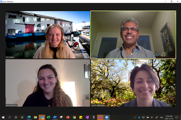 From top, left: Tia Lubbers, Milton Carrasco, Jeanine Marrou, and Dr. Lily Elefteriadou on Zoom during the Transoft Scholarship Awards ceremony.