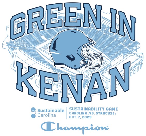 Sustainable Carolina is thrilled to present the Champion Sustainability Football Game. On October 7 from 12:30 - 3:30 pm, we’re handing out a limited number of buttons and t-shirts in Tar Heel Town. Join us to celebrate the new, energy efficient lights in Kenan Stadium and Carmichael Arena, along with all the University’s other sustainability accomplishments.