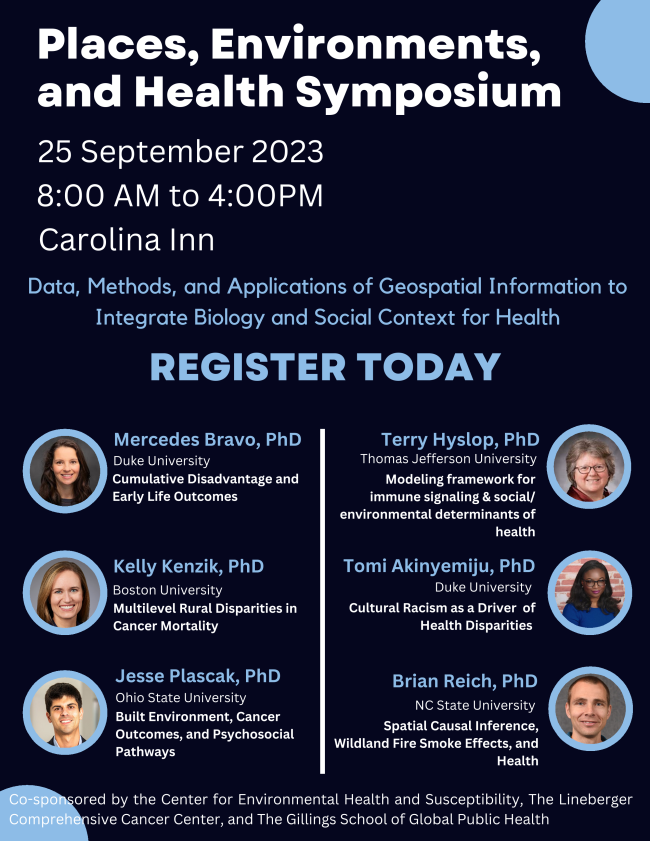 This is a co-sponsored event by the Gillings School, the UNC Center for Environmental Health and Susceptibility and the UNC Lineberger Comprehensive Cancer Center.