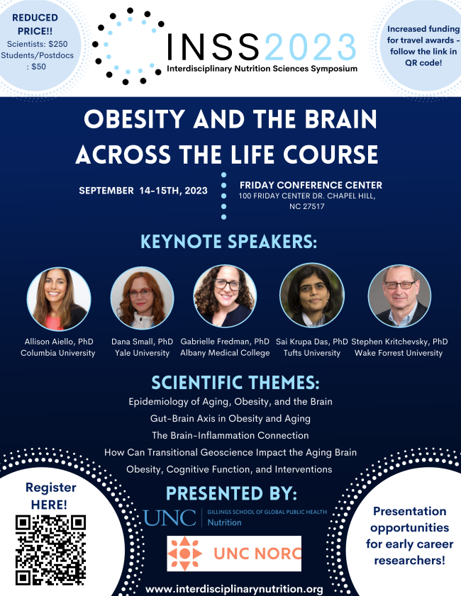 This year’s INSS will address the critical need to establish rigorous interdisciplinary and translational approaches in the context of nutrition and obesity to effectively prevent and treat a variety of physiological outcomes as they relate to aging and the brain. They will host 15 speakers from more than 10 different institutions presenting on a wide variety of topics.