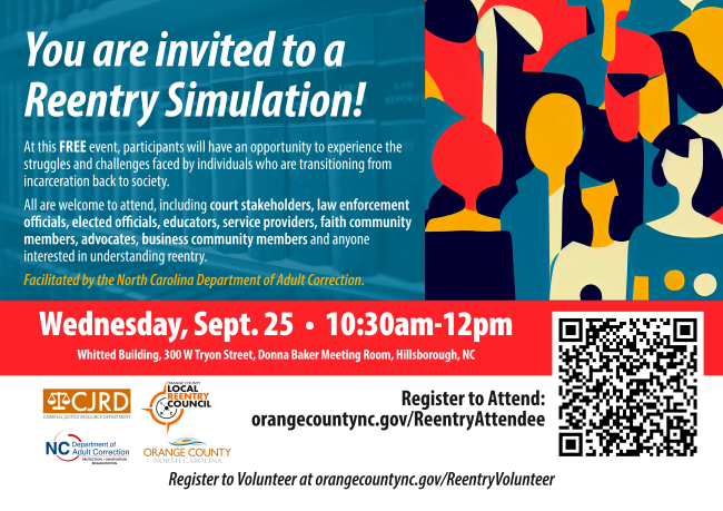 We are pleased to announce that we will be hosting a reentry simulation in Orange County on September 26. This complimentary event is expected to run for approximately two hours and presents a valuable opportunity for individuals to gain insights into the reentry process.
