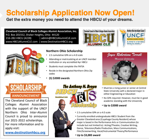 The campaign is supported by UNCF’s Regional area office lead by Andrea L. Neely, Regional Development Director, Anthony Brown, UNCF NAC President, the Northern Ohio Inter- Alumni Council with the support of the Cleveland Council of Black Colleges Alumni Association continue to serve the northern Ohio community annually. The Northern Ohio Scholarship is UNCF’s signature resource program for Cleveland that continues to invest in better futures for students that are freshmen to seniors in college. This is in addition to the hosted Destination HBCU College Scholarship Fair.