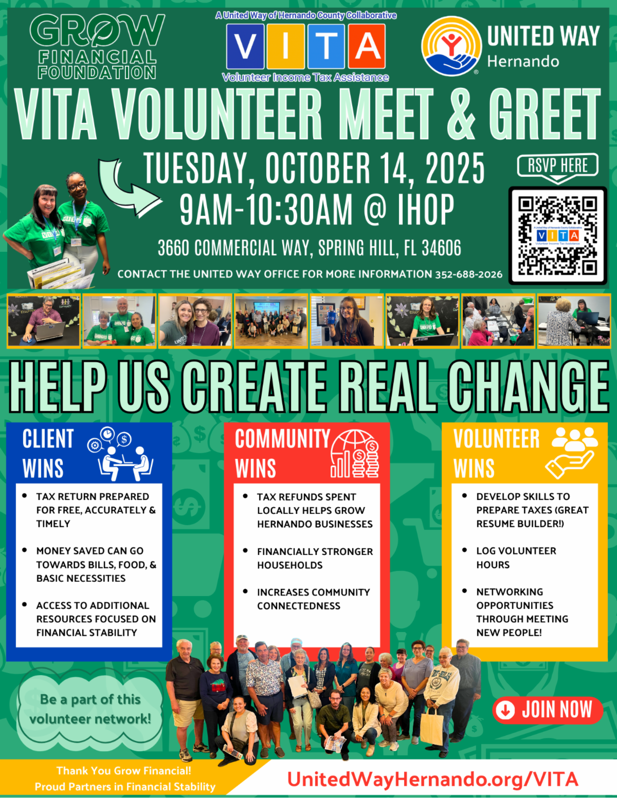 Register at UnitedWayHernando.org/Volunteer or contact Justine at impact@UnitedWayHernando.org