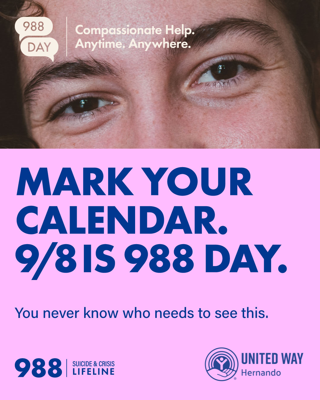 Hernando's call trend report show 143 calls were made to 988 in the month of August 2025 alone. Be the one to help get them help.