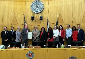 The day started with a performance by the UNLV Mariachi Band. During the Commission meeting, UNLV President Chris Heavey provided an overview of UNLV, as well as updates on several programs and recent activities. Following his presentation, the Commission presented President Heavey with a Proclamation recognizing all that UNLV makes possible for individuals and organizations in Southern Nevada. UNLV’s Dental Public Health Residency Director Christina Demopoulos also provided comments to the Commission regarding several services the UNLV School of Dental Medicine provides in multiple districts throughout the County.