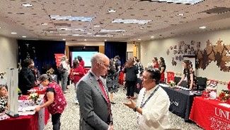Additionally, UNLV Graduate Admissions, Alumni Engagement, School of Dental Medicine, Kirk Kerkorian School of Medicine, UNLV PRACTICE, Boyd School of Law, and Government and Community Engagement teams visited with Commissioners, civic leaders, members of the public, and Clark County employees, including many who are UNLV alumni. They were joined by President Heavey following his presentation to the Commission for an informal reception.
