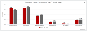 UNLV’s Office of Government and Community Engagement facilitates the university’s annual Campus Community Engagement Inventory and administers the annual UNLV Community Partner Survey. These efforts help the university better understand the many ways the campus connects with our community, as well as community partner perceptions of the university’s community engagement activities. The UNLV Community Engagement Dashboard contains key indicators gathered from these two data collection efforts. The Dashboard was recently updated to include FY25/AY24-25 data.