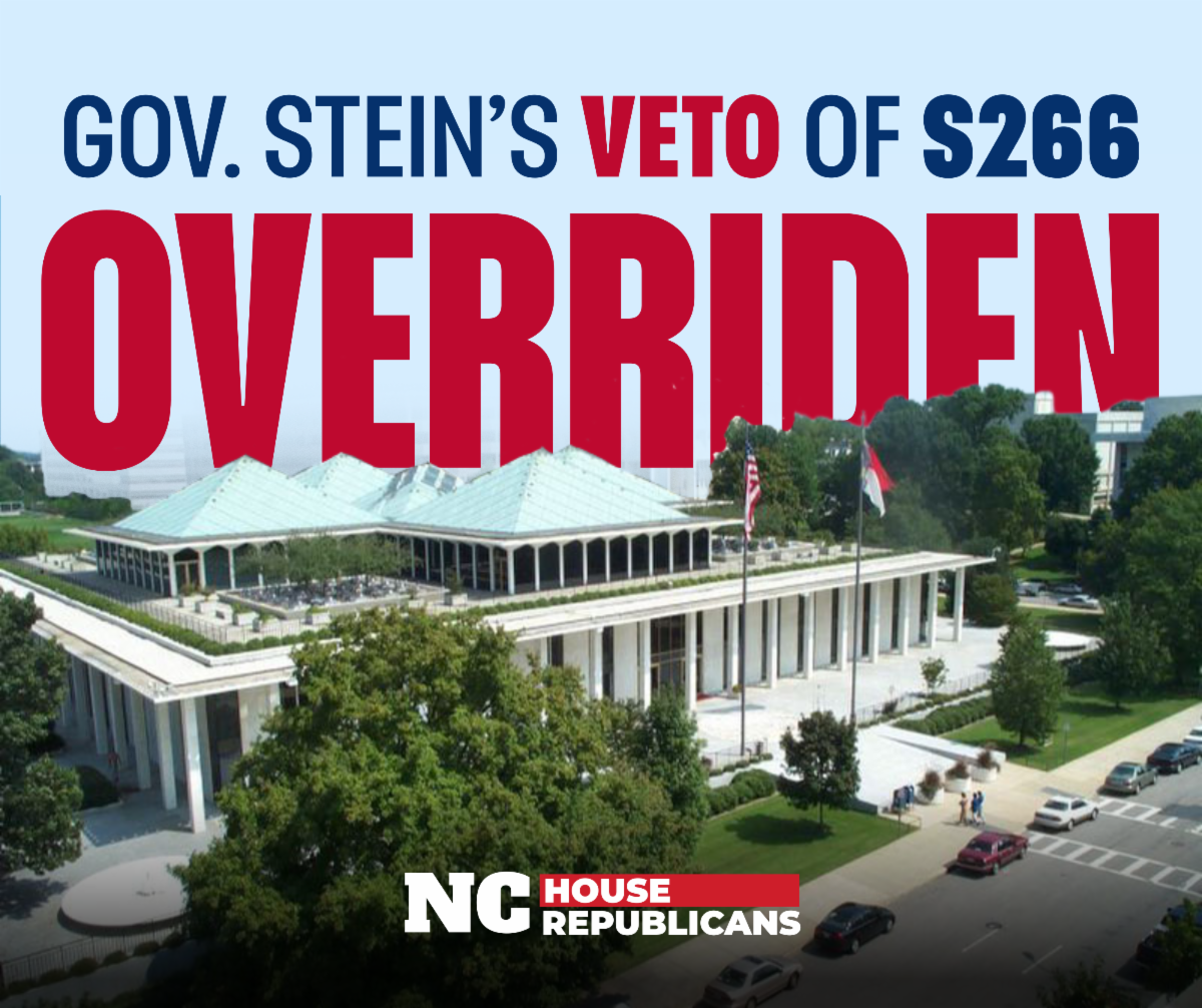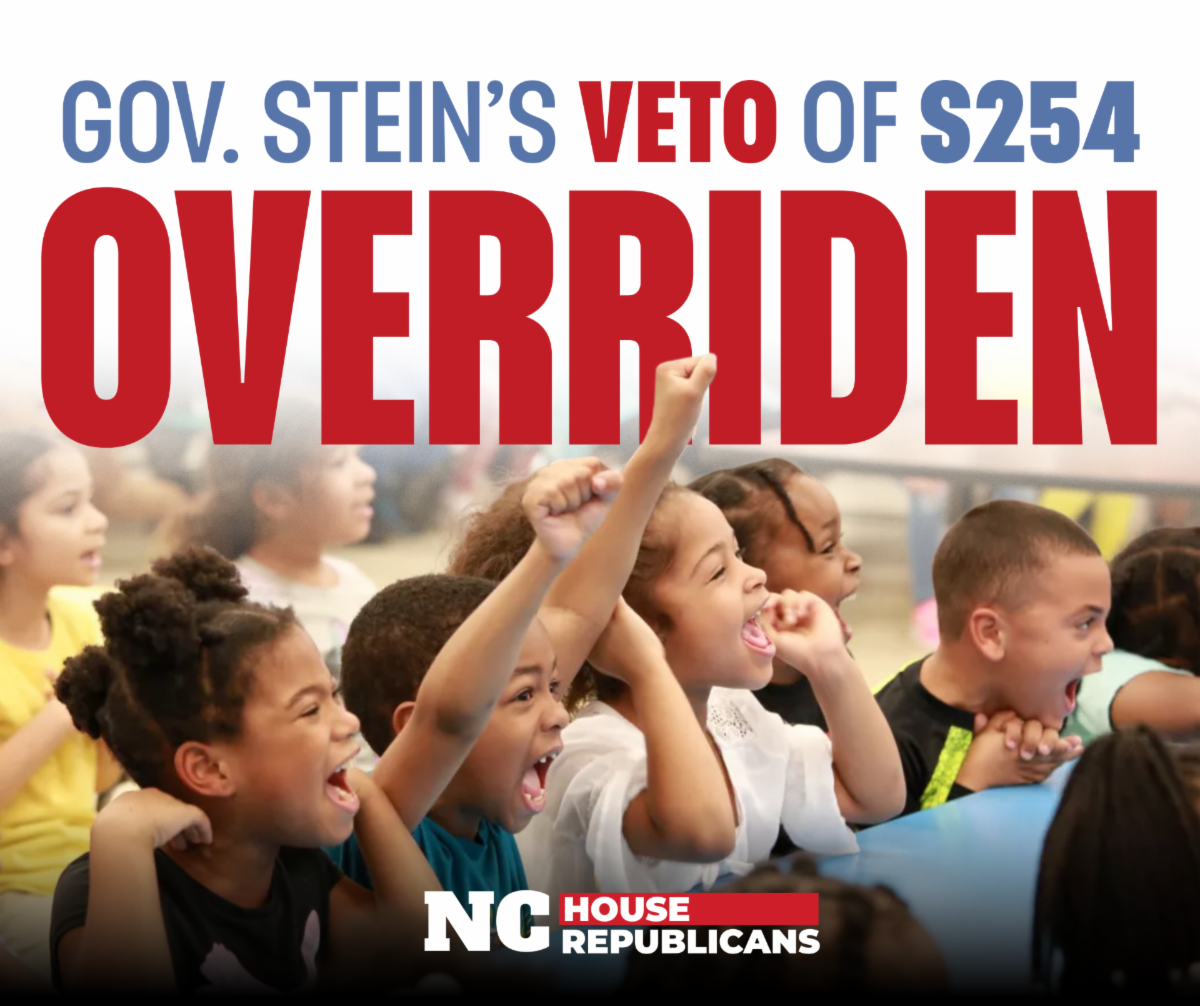 The House also overrode SB 254, Charter School Changes. This bill amends Charter school laws, establishes the role of the State Board of Education for Charter schools, establishes a NC Charter schools review board, and creates a NC office of Charter schools. This bill will help improve the education here in North Carolina.