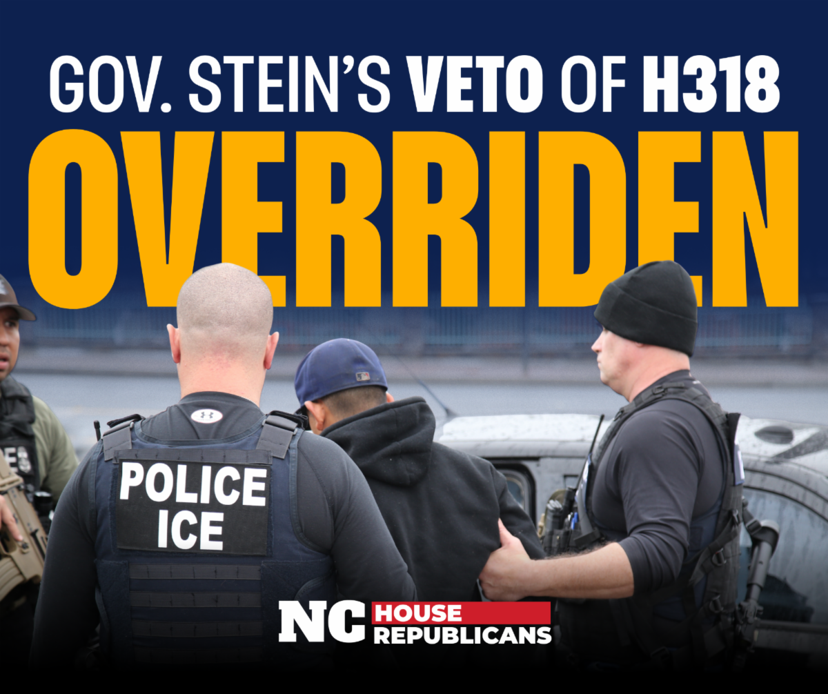The NC House overrode Governor Stein's veto to HB 318, The Criminal Illegal Alien Enforcment Act. This bill requires law enforcement to corporate with ICE. This bill will keep people safe and improve NC.