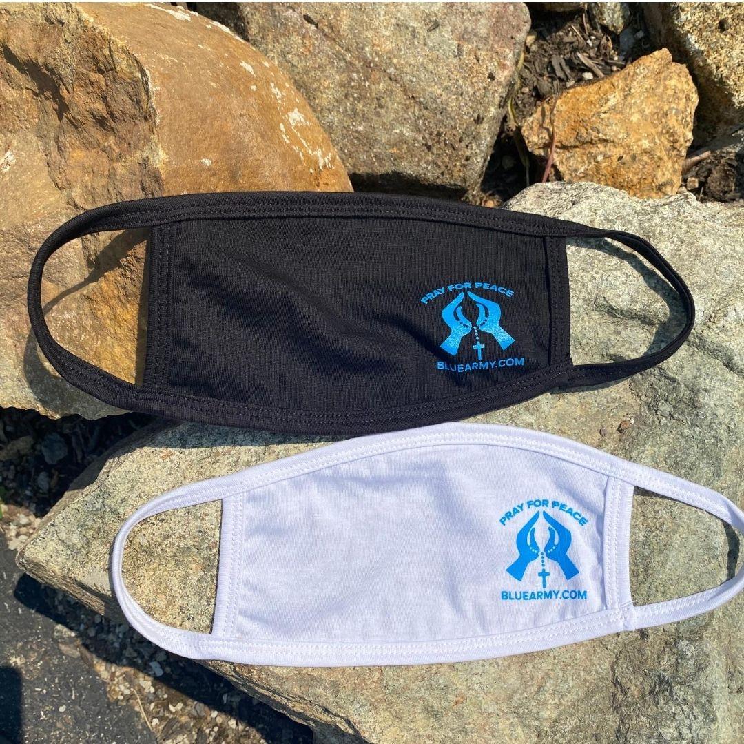 100% cotton, hand-wash only, line dry. Our Lady's Blue Army masks are available in black and white. Join The Blue Army. Pray the Rosary daily and Pray for Peace.
