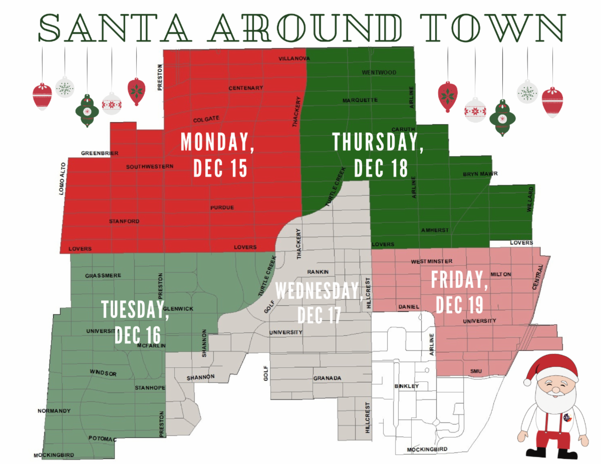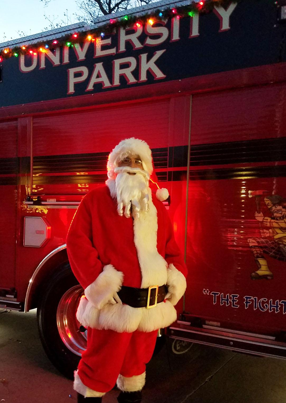 Get ready, UP! Santa Claus is coming to town! Before his big trip around the world on December 25, Santa will once again tour the City’s neighborhoods with help from the University Park Fire Department.
