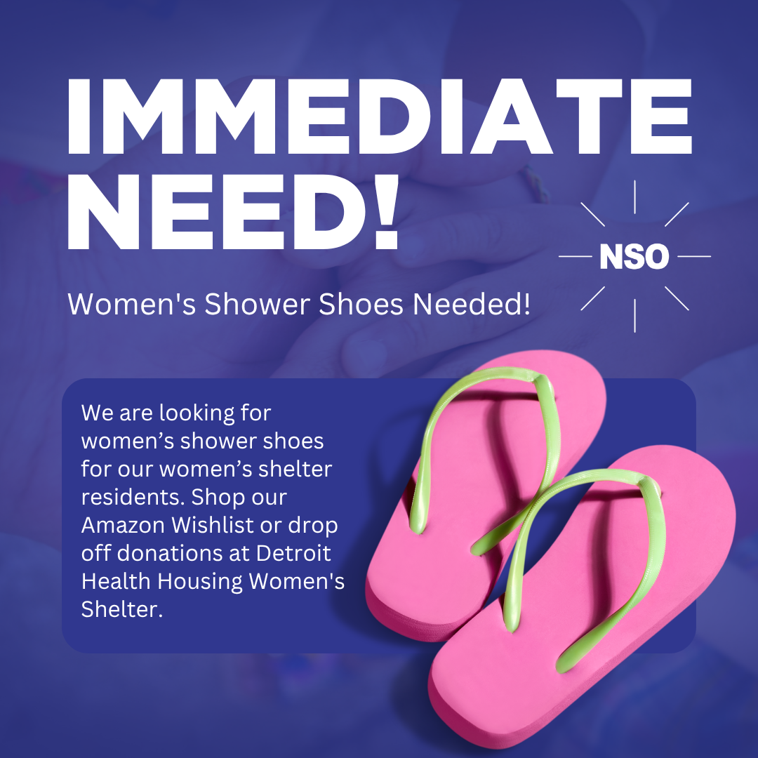 We need your help! NSO’s Detroit Healthy Housing Women’s Shelter is in immediate need of women’s shower shoes for our residents. These simple items make a big difference in promoting dignity, comfort, and hygiene for women transitioning out of homelessness.