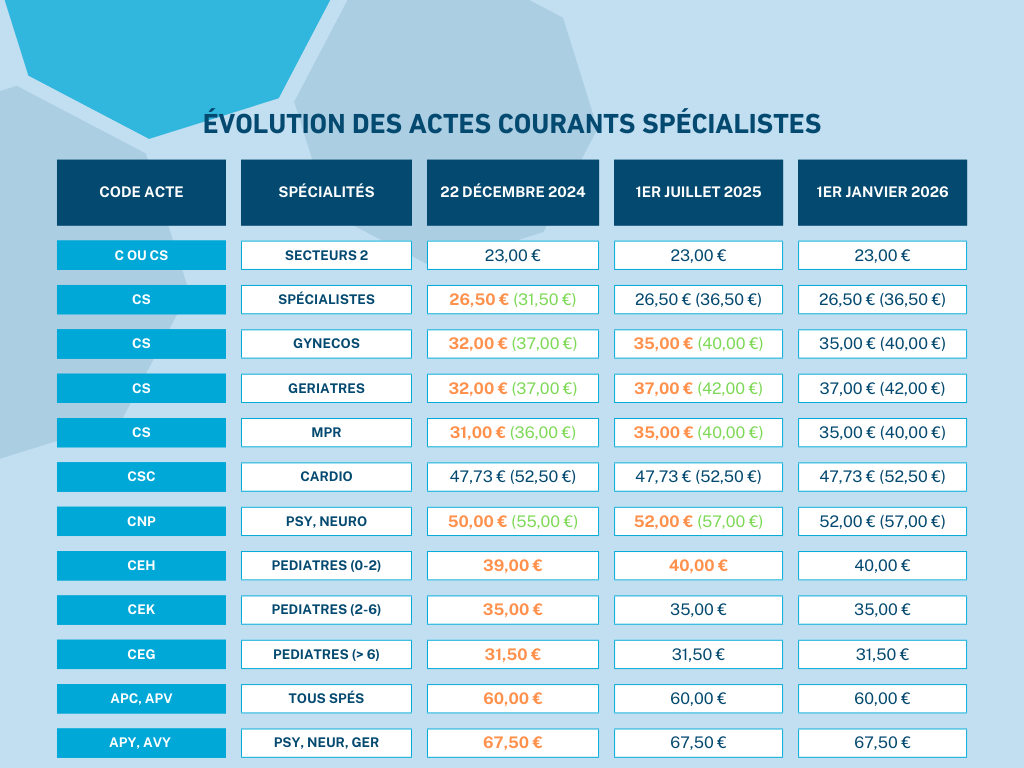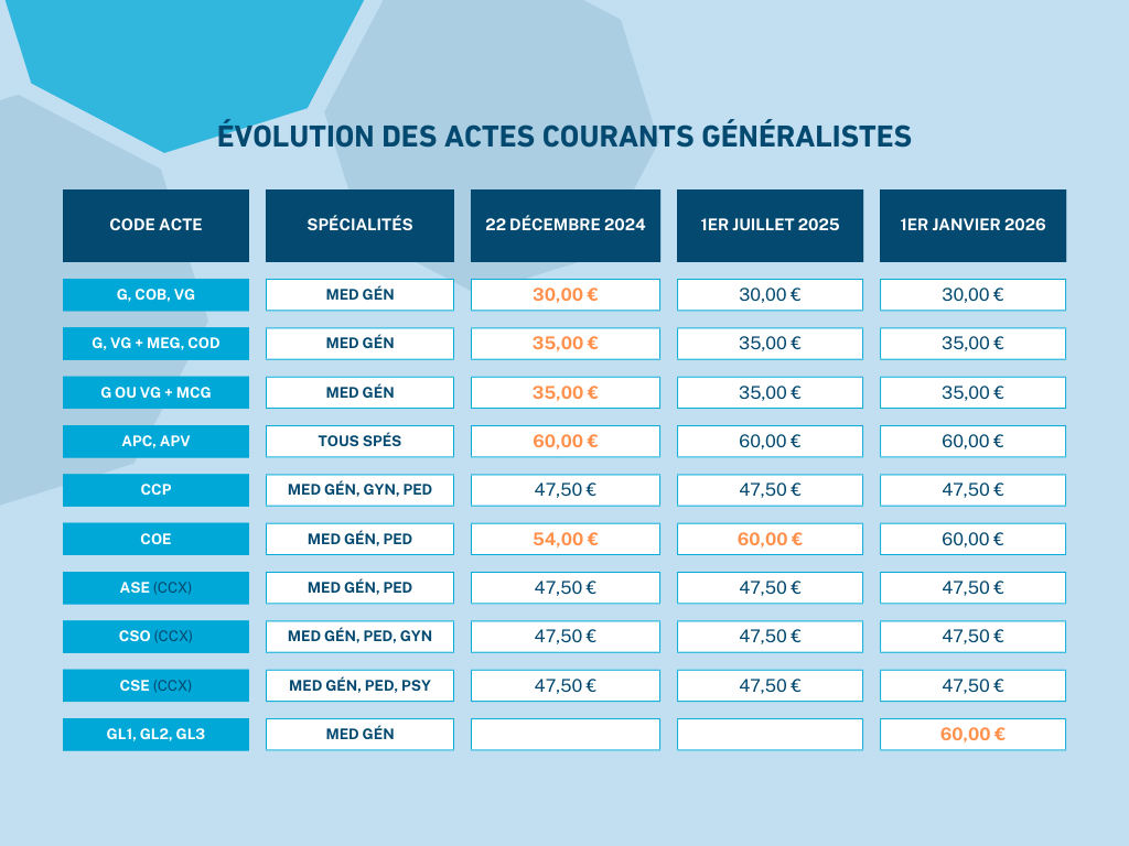 Note : En vert, actes réels avec la MCS (+5€) et les MPC, MCC et MGM avant le 22 décembre 2024. |