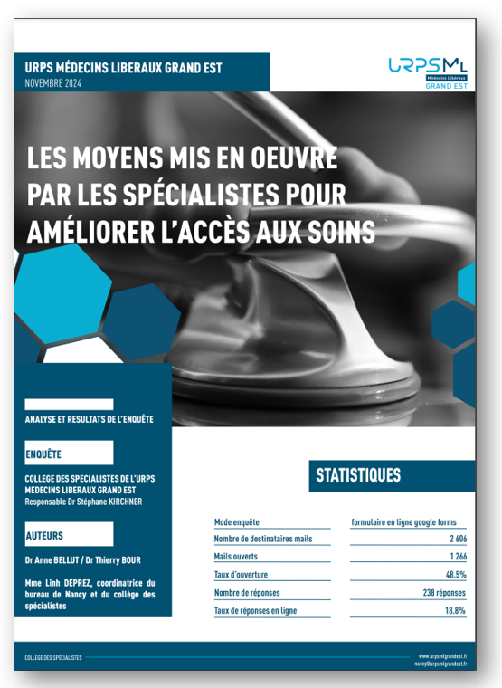 L'année a été riche pour le Collège des spécialistes de l'URPS ML Grand Est, qui a mené deux enquêtes consacrées à la pratique des spécialistes de la région.