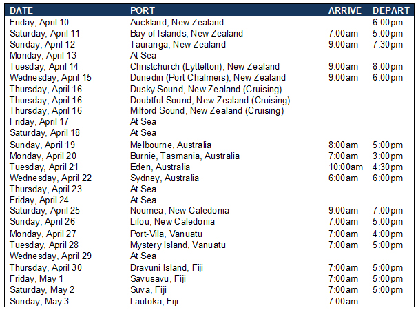 | | 12 NIGHT AUSTRALIA & NEW ZEALAND SEASCAPES | | |