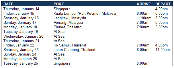 | 12-night Splendors of Southeast Asia | | |