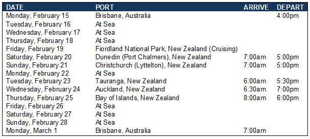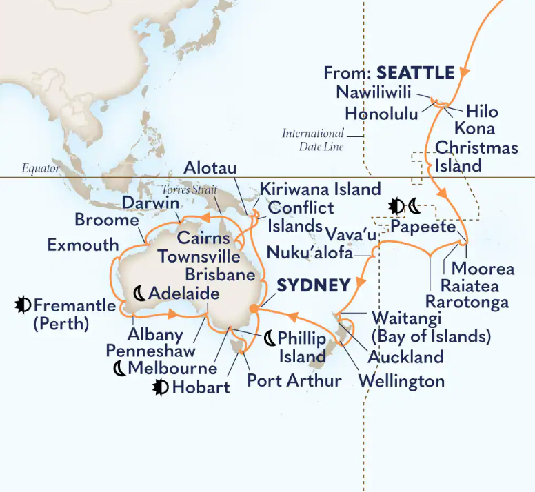 | | 69-night South Pacific Crossing & Circumnavigate Australia | | |