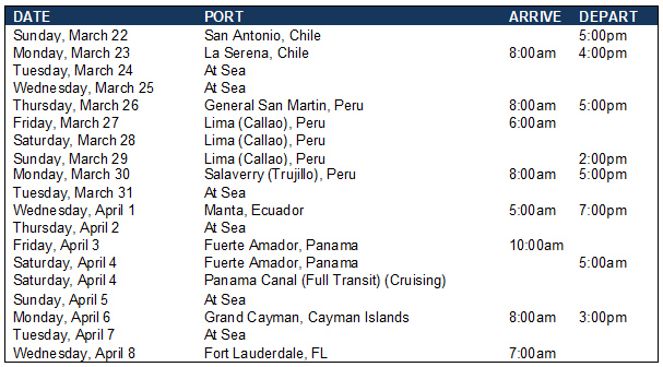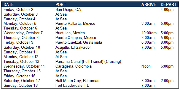 | | 16-night Panoramic Panama Canal | | |